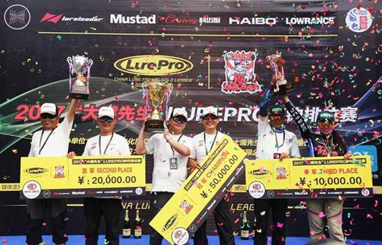 随着时间的推移,时间到了下午14点,比赛结束。最终经过8小时的角逐,两日的总成绩出炉。来自来自江西的吴新茂、余宗友组合以6.75公斤一举夺冠,捧起了2017大嘴先生鲈钓排位赛冠军奖杯,同时获得5万元现金大奖。