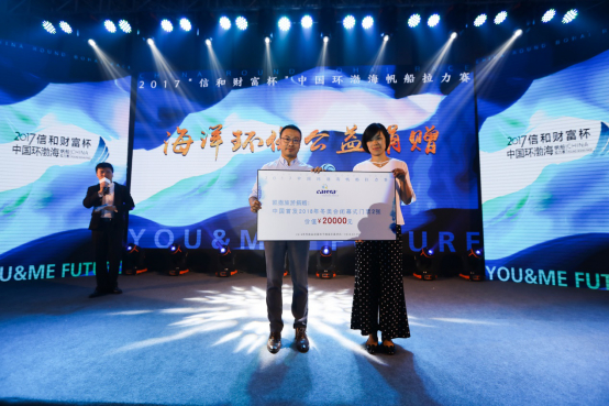 在7月举行的赛事新闻发布会上,“中华环境保护基金会-海洋环保基金”正式成立。作为该基金的第一个合作赛事,本届环渤海帆船赛围绕“体育+公益”展开。在闭幕式上主办方发起了“海洋环保公益捐赠”活动,赛事合作伙伴信和财富、凯撒旅游、金米兰咖啡均参与活动,向中华环境保护基金会捐赠了物品。值得一提的是,凯撒旅游捐赠的两张2018平昌冬奥会闭幕式门票,受到现场来宾的强烈关注。据主办方透露,捐赠的物品将在赛后进行义卖,义卖所得善款将全部捐赠至“中华环境保护基金会-海洋环保基金”。