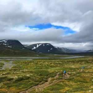 第三天行程进行到一半,今天也是所有行程中最难的一天,穿过空旷遥远的草地,充满泥泞的碎石子路,通过瑞典最大的山脉,经历长距离穿越和纯美的自然景观。那里野花遍地,溪流处处,有巨大光滑的岩石适合休息小憩。