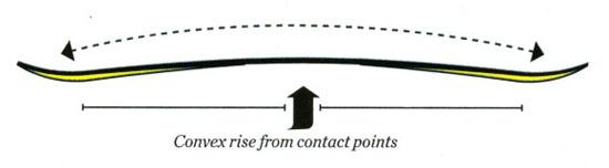 就像Camber的中文意思一样,它是一种中间向上拱起的板型,类似于拱桥的形状。不论是从形状上还是功能上,它与Rocker都形成了鲜明的对比。中间向上拱起的形状令其拥有了最大化的弹性积蓄量,让它在ollie、nollie等动作上表现相当优异,如果你可以熟练的ollie,那么你能明显的感受到Camber给你带来的巨大弹性,常被用在大跳台上和U池中的Burton的Custom X就是一个非常典型的例子。雪板两头时刻接触雪面,而我们双脚站在两个接触点中间,这意味着最大化的有效边刃长度,同时避免了板头板尾在切雪过程中的抖动,从实际效果上来看就是刻滑时能够给我们带来极高的稳定性。