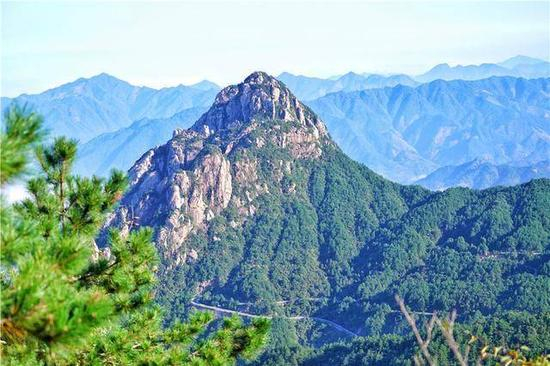 这就是皖浙天路上的笔架峰,为荆州公路第一景。顾名思义,因为此峰顶出五锷,形如笔架,悬空削壁,望不可攀,古人有诗云:“仰慕原由盘古脊,垂名却为女娲姿。满天风月诗藏意,四面青山作低题。架上提来绝妙笔,笔尖莫向暴秦低”。