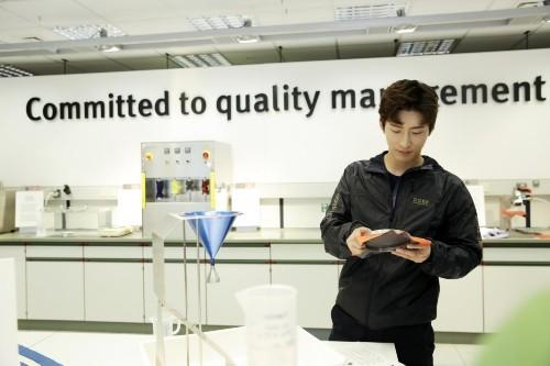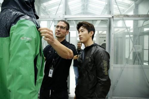 众所周知,GORE-TEX 品牌一直致力于开展严格的产品测试和舒适度试验,确保每一件产品都能经得住时间和环境的考验,所以窦骁此行特地参观了全球拥有最高水平检测技术的实验室。在这里,无论是鞋子还是服装都要经过“千锤百炼”, 一件外套需要在多种不同的温度条件下经过摩损、洗涤等严苛测试,特别是在冷弯曲测试中,GORE-TEX 面料要在极低温度下连续几个小时不断受到挤压和拉伸,来确保面料是否在严酷考验之后还能持久保持防水性能。同样一双鞋,要在装有湿度传感器的人造足上面,在布满水的水槽上走20万步,哪怕有一个微小漏水处都会被感知,窦骁对戈尔公司先进的检测技术表示赞叹。