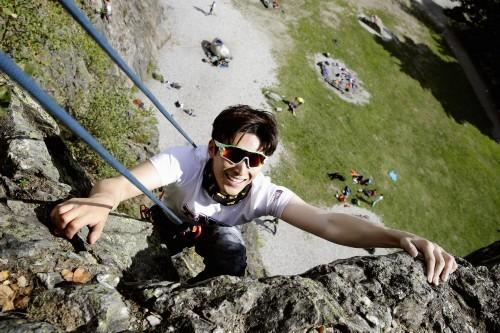 攀登的第四小时最难的挑战来了,窦骁眼前是一块高度5米,呈90度垂直的岩壁,表面异常坚硬光滑,在岩壁上只有大约和一个手指宽度相仿的裂缝。加上前三个小时的攀登已经消耗了太多体力,最后一段的攀登除了要靠技术,还要靠毅力,窦骁丝毫没有怯懦,只见他将冰爪牢牢的钉进裂缝,靠手指的力量一点点向上,虽然每上升一点都异常的艰难,但是窦骁咬紧牙关,集中精神,将体力和技巧融合,最终拿下这块90度岩壁,满满的成就感!