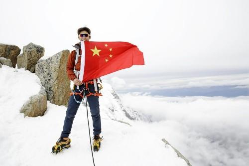 终于在霞慕尼当地时间下午13:07,北京时间9月30日的晚上7点多,窦骁成功登顶南针峰,为了庆祝祖国68岁生日,窦骁展开了一面鲜艳的五星红旗,一抹鲜亮的红飘扬在南针峰之巅!