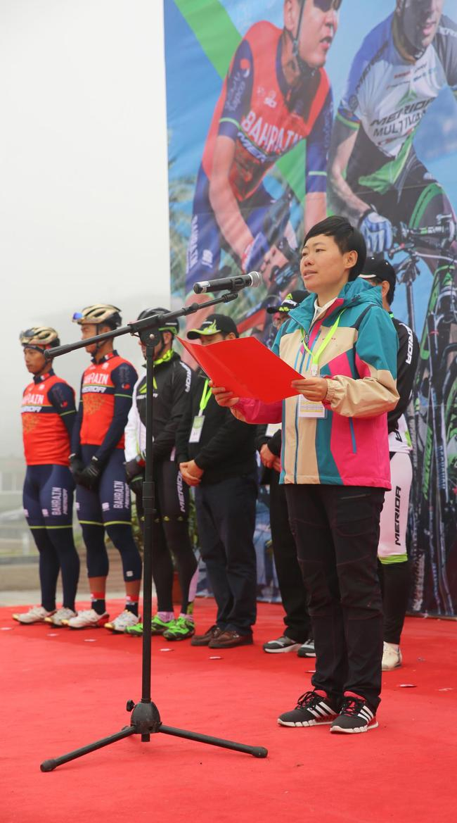 开幕式上,黄山市黄山区人民政府副区长曾莉作为主办地代表向全体参赛运动员表示了热烈的欢迎,并表示本次赛事将秉承黄山“文化+旅游+体育”的品牌创新理念,在突出赛事专业化和精细化特点的同时,倡导绿色、低碳、环保的理念,满足全方位骑行人群,向全世界展示一个充满激情与活力的黄山。