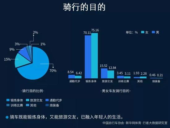 从骑行的目的来看,骑车既能锻炼身体,又能旅游交友,已成为年轻人的一种生活方式。对于现在网络社交几乎替代现实社交的趋势下,骑行俨然成为一种新型的现实社交形式,此一特点也使得骑行运动更容易被更多人接受。