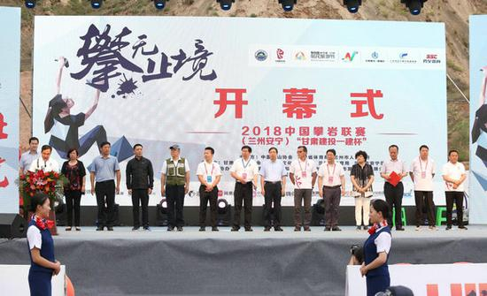国家体育总局登山运动管理中心主任、中国登山协会主席、中国著名登山家李致新,甘肃省体育局副局长王克平,国家体育总局登山运动管理中心攀岩部主任厉国伟,中国登山协会副秘书长、攀岩奥运备战办主任罗申,原总参谋部少将/势至体育首席顾问宋举浦,甘肃省航空运动学校校长、登山运动协会常务副会长刘升,兰州市人民政府副秘书长淡汉荣,中共兰州市安宁区委书记王方,兰州市安宁区人大常委会主任李世祥,中共兰州市安宁区委副书记、区政府区长雒泽民,兰州市安宁区政协主席黄晓玲,兰州市全民健身指导中心主任王勃,中共兰州市安宁区委、区政府常务副区长张吉彬,甘肃建投一建集团董事长胡继河,势至体育董事长刘大可等领导嘉宾出席了本次赛事开幕式。中共兰州市安宁区委副书记、区长雒泽民同志,国家体育总局登山运动管理中心领导李致新同志,甘肃建投一建集团董事长胡继河同志作了开幕式致辞。随后,运动员、裁判员代表分别登台进行宣誓。最后,由中共兰州市安宁区区委书记王方宣布开赛。开幕式后进行了精彩的文艺表演,本次演出充分结合了地方特色,深度展现了“旅游+体育+文化”的内涵,立体化呈现赛事活动的魅力。