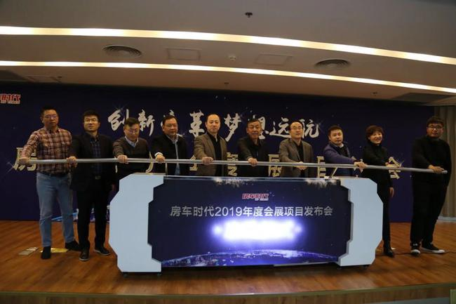 发布后,举行了房车时代2019年度会展项目启动仪式,中国汽车新闻工作者协会理事长李春雷,《中国汽车报》社总编辑桂俊松,中国汽车新闻工作者协会常务副理事长兼秘书长、《房车时代》杂志出版人李元胜,中国汽车新闻工作者协会执行秘书长兰祥家,江铃集团旅居车副总经理樊向荣,帝盛房车董事长林玉森,埃文海姆朗宸旅居车董事长Jeffrey Zhang,凯伦宾威房车营销部部长焦峰,雅升房车董事长王永金,旌航房车总经理王皓,中天行副总裁王碧卓,拓锐斯特房车销售总监许扬,四川驼峰通用航空有限公司董事长助理肖明祥,《房车时代》杂志社总经理韩君善共同上台,一起推动启动杆,将现场氛围推向高潮,拉开了2019年度房车展会的新篇章,将引领国内房车会展水平向高质量方向发展。