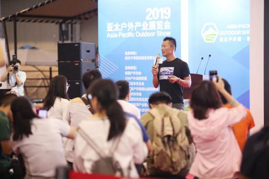 此外,贯穿2019亚太户外展全展期的舞台区活动也非常丰富:户外行业报告发布、电商平台计划分享、项目推介发布、攀登故事亲述、公益活动号召等等,台上台下互动轻松,受益良多。