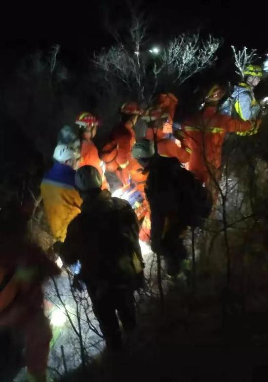 据门头沟蓝天救援队队长“牛栏山”(网名)介绍,昨天晚上7点左右,他们发现了受伤女驴友,大家使用40米长绳索下降至伤者身边。针对伤者多处骨折的情况,救援人员现场进行救治,晚上7点50分止血包扎处置完毕,救援人员利用卷式担架固定伤者,开始下撤。