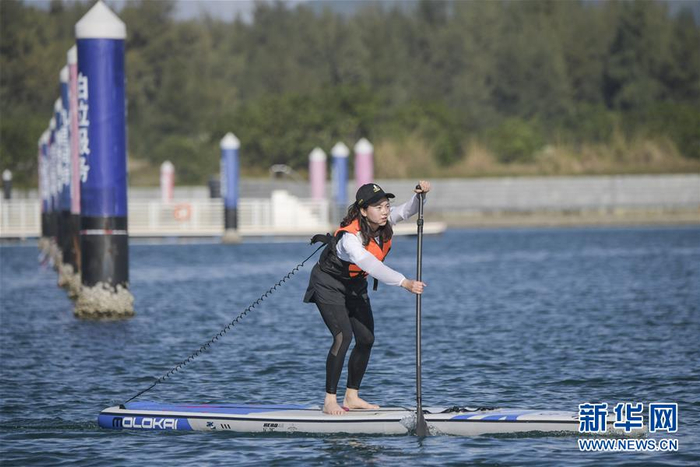 12月18日,北华大学选手邱丽潘在女子桨板竞速绕标环岛500米预赛中,她最终获得该项目决赛冠军。 当日,2019年第三届中国大学生桨板竞速挑战赛在海南万宁石梅湾开赛。来自全国13所高校的近百名选手在男子、女子桨板竞速绕标环岛500米和男子、女子桨板竞速绕标环岛3000米以及男女混合桨板竞速绕标环岛4X500米接力赛展开角逐。 新华社记者蒲晓旭摄