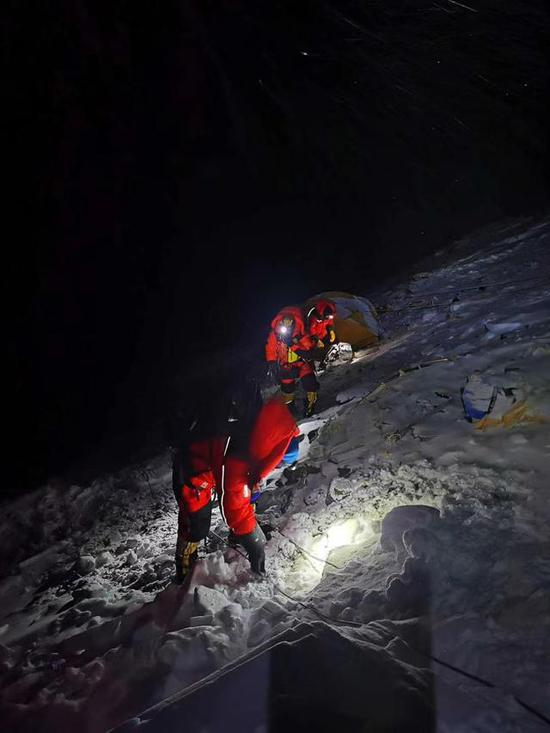 2020珠峰高程测量登山队5月27日2点10分出发,冲顶珠峰。扎西次仁 摄