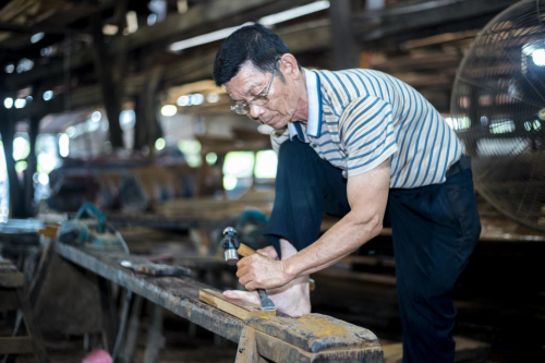 李师傅快六十了,打小就跟父亲做龙舟。那时候,他只知道这是爷爷传给父亲,父亲传给自己的“秘密”。粗略算算,老李已经做了五十年。