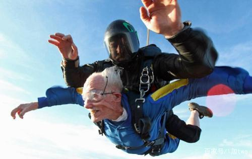 曾在二战中修飞机 103岁老人4000米跳伞破纪录