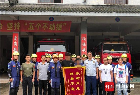 8月15日,他们向乐山山岳救援队和峨眉警方所送来“救命大恩终身不忘” 锦旗,向救援人员表达感谢之情。