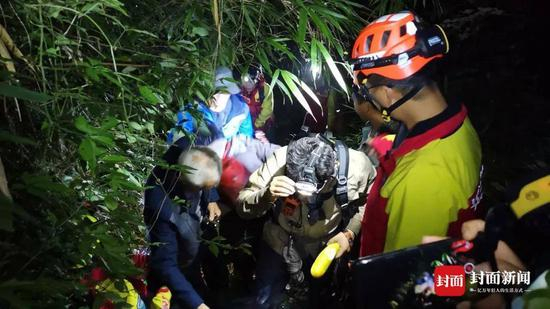 由于下雨和大雾天气,无公网和卫星信号、踪迹不明显,搜救行动也是异常艰难。从听到两人的求救呼喊声到突击组最终抵达他们的位置,花了4个多小时,跨越3段纵深百米的悬崖峭壁。