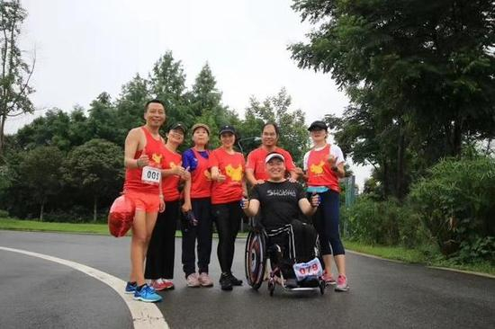 “我膝盖疼,今天不跑了。要不我坐你腿上,你带着我跑。”看到孙善永的裤腿是空的,跑友跟他开起了玩笑,尺度颇大,而孙善永也爽快,“好嘛。”言语颇为自信。8月15日成都青龙湖的半程马拉松比赛,偌大的跑团中只有孙善永一个是重度残疾,跑友视他为英雄,纷纷请求合影留念,而孙善永来者不拒,随和友善。