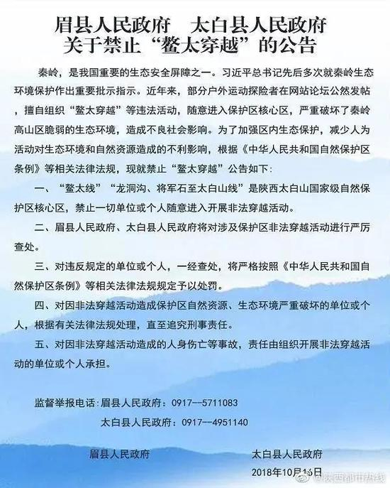 陕西电视台都市热线微博@陕西都市热线9月26日消息,9月25日,有知情人向记者透露,一名19岁四川籍男子独自鳌太穿越时遇难。