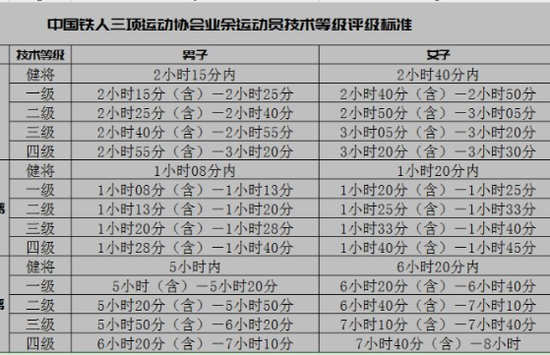 铁人三项标准距离对应的国家最低标准是多少,我们业余铁人三项与国家最低标准的差距有多大?