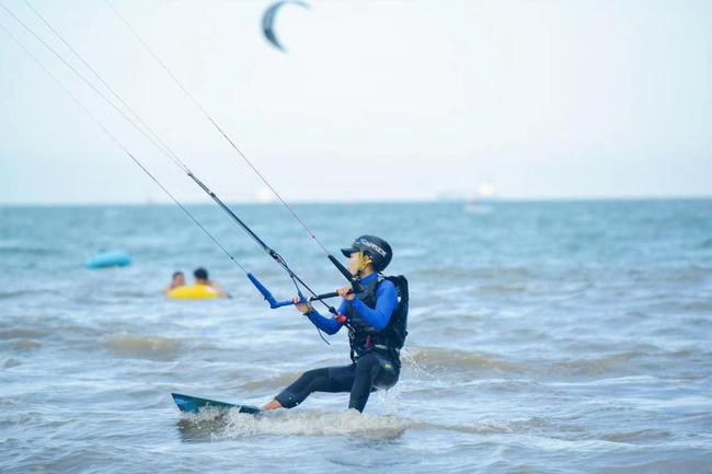 风筝冲浪,素有“海上高尔夫”美誉。运动员凭借充气风筝牵引,脚踩冲浪板上天入海。这项运动混合了特技风筝、帆板、冲浪、滑水、滑板等多种运动元素,是当今最时尚的海上运动之一。风筝冲浪是2018青奥会比赛项目,并正式成为2024奥运会项目。随着这项时髦的水上运动在海南推广兴起,将有望成为海南一张闪亮的水上运动名片。