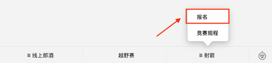 ● 关注[果动赛事助手]微信公众号,点击菜单栏[体育季]-[射箭达级赛]即可进入报名页面;