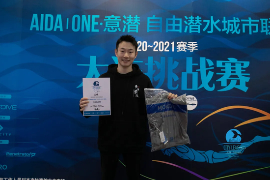 2020.12.13 大连挑战赛 动态双蹼男子冠军 成绩240M新男子国家记录(距世界纪录仅10米)静态闭气男子冠军 成绩7:25