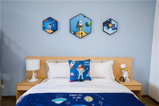 温馨家庭房暖光照明、卡通设计感十足,让游客拥有满满归家感。