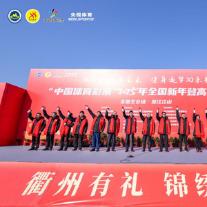 2025年1月1日,由国家体育总局、中央广播电视总台共同主办的“中国体育彩票”2025年全国新年登高健身大会主会场活动在浙江省江山市江郎山景区盛大举行。中国奥委会副主席周进强,国家体育总局群体司司长丁东,中国登山协会主席李致新,国家体育总局体育彩票管理中心主任、党委书记张弛,国家体育总局登山运动管理中心副主任、党委副书记常建东,国家体育总局体育科学研究所党委副书记、副所长袁虹,国家体育总局社会体育指导中心副主任黄强,浙江省体育局党组书记、局长金志以及羽毛球奥运冠军黄雅琼等领导和嘉宾出席了主会场开幕式。