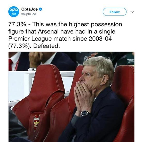 但阿森纳还是输球了。延续了以往的剧情,全场围攻,掌握绝对的控球权,进攻追求传切配合,但是得势不得分,最后被对方“偷一个”,输掉了比赛。
