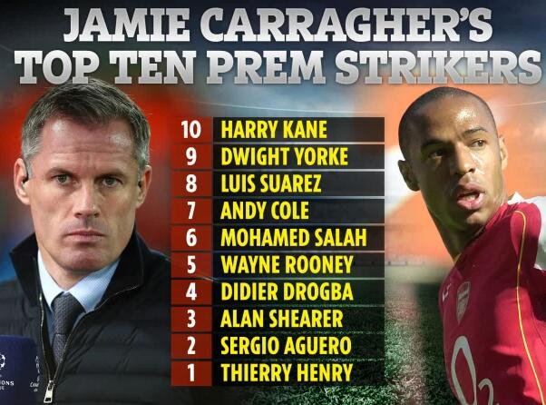 利物浦名宿卡拉格评英超史上最强十大前锋,他把亨利列在第一。