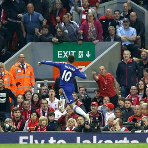北京时间5月12日03:00(英国当地时间11日20:00),2015/16赛季英超第30轮一场补赛在安菲尔德球场展开争夺,切尔西客场1比1战平利物浦,阿扎尔单骑突破打入世界波,本特克伤停补时扳平比分。