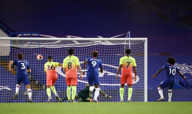 切尔西第78分钟再次超出,威廉反击中禁区右侧传中,亚布拉罕扫射被埃德森勉强扑出,皮球又被普利西奇挡回门前,费尔南迪尼奥防止亚布拉罕补射时左手将皮球拍出。VAR审核后判定点球,主裁阿特维尔将费尔南迪尼奥罚下,威廉点球射入左上角,2-1。