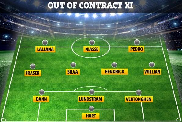 英超合同到期11人阵容:切尔西双星+曼城核心