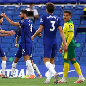 但吉鲁在切尔西进攻中的作用依然十分明显,他始终能牵制住诺维奇1-2名防守球员。终于在半场结束前,吉鲁迎来了他本场的高光时刻,普利西奇左路起球,早早站好位置的吉鲁牢牢扛住防守球员,随后迎着来球完成了一次冲顶攻门,如此近的距离克鲁尔也无能为力,球应声入网。在半场即将结束的这个重要时刻,吉鲁为切尔西打破僵局,大大提高了全队的信心。