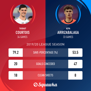 来自数据网站Squawka的统计,整个五大联赛出场25+的门将中,凯帕是扑救率最低的门将,只有53.5%,丢了47球,零封场次只有8场。也就是说,单论扑救率的话,说凯帕是五大联赛最烂的门将都是有据可循的。这显然非常尴尬。