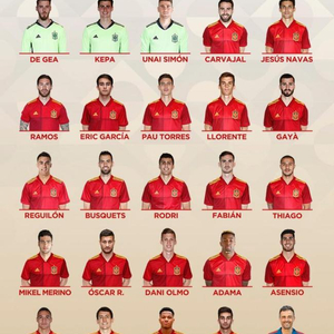 前锋:罗德里戈(瓦伦西亚)、特劳雷(狼队)、阿森西奥(皇马)、奥亚萨瓦尔(皇家社会)、法蒂(巴萨)、费兰-托雷斯(曼城)