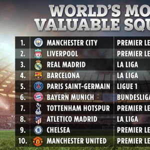 根据《太阳报》的数据评估,当今足坛阵容最值钱的球队是曼城。