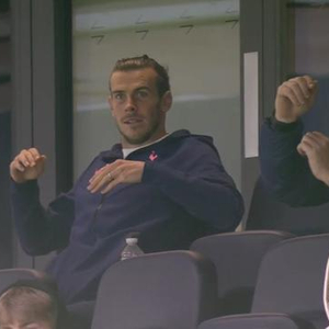 目睹热刺打入精彩进球后,贝尔在看台上非常的兴奋,他为自己的东家送上了掌声。这一刻,贝尔的开心写在了脸上。