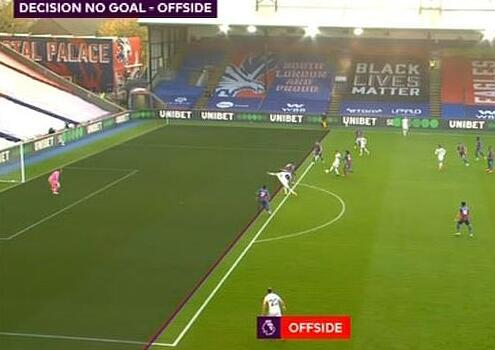 在利兹联对水晶宫的比赛中,利兹前锋班福德打进一球,但VAR在查看后判为越位无效。画面显示,班福德的身体和脚都在不越位的位置,只是一只胳膊伸了出去,在向队友示意传球。