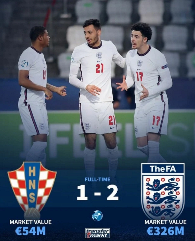 U21欧锦赛正在进行,英格兰U21队2-1战胜了克罗地亚,但他们却还是小组出局了。