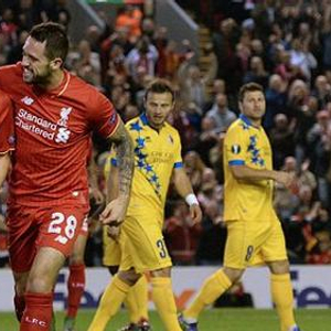 B组 利物浦主场1比1战平锡永。利物浦轮换8人,仅有米尼奥莱、克莱因和埃姆雷-詹继续首发。利物浦开场仅4分钟取得领先,奥里吉突入禁区右侧回传,无人防守的拉拉纳10码处第一时间推射左下角入网(点击观看进球视频)。随后奥里吉切入禁区右侧劲射被封堵,艾比另一侧小角度射门被扑出。乔-艾伦同拉拉纳踢墙配合后直传,因斯禁区右肋的射门被封堵挡出。锡永第17分钟扳平比分,克莱因后场传球失误,库亚西直传,阿斯福亚胸部停球后小禁区右侧斜射破门,1-1(点击观看进球视频)。第20分钟,克莱因禁区右侧传球,因斯推射破门因越位在先被判无效。罗斯特尔任意球传中,埃姆雷-詹10码处冲顶正入对方门将下怀。