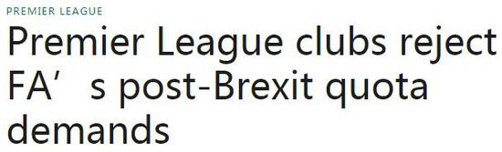 《泰晤士报》报道,对于脱欧后英足总削减外援的计划,英超俱乐部已经明确表示了反对,他们认为这对于提升英格兰队的表现没有好处。