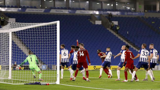 凯塔送出直传,萨拉赫禁区右侧小角度射门被没收。第26分钟,邓克长传,越位的格罗斯禁区右侧传中,特罗萨德推射破门被判无效。特罗萨德传中,莫派小禁区左侧射近角被阿利松救出。凯塔传球,萨拉赫禁区右侧斜射偏出远角。布莱顿第45分钟扳回一城,兰普提右路传中,特罗萨德11码处凌空扫射入网,1-2。