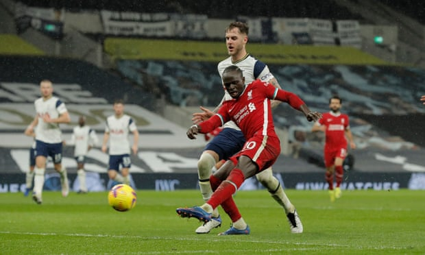 第65分钟,阿诺德右路斜传,罗登防守漏球,马内小禁区边缘抽射上角入网,3-1。蒂亚戈被琼斯换下,贝尔替换贝尔温出场。热刺无力挽回败局,利物浦近6轮首胜。