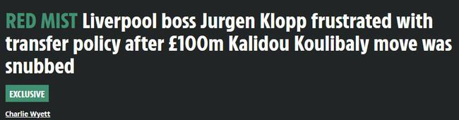 该报称,克洛普私下表示,他想要那不勒斯后卫库里巴利,但芬威集团老板的回应是,疫情之下的开支需要控制,为了安抚克洛普,红军花200万从英冠买下后卫本-戴维斯、从沙尔克租来了卡巴克。