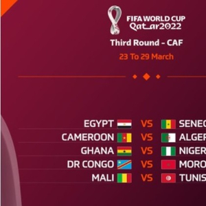 其他4组对决,非洲杯上表现不错的尼日利亚将对阵加纳。尼日利亚是世界杯常客,最近7次世界杯只缺席1次。此外,踢过7次世界杯的喀麦隆将对阵阿尔及利亚。
