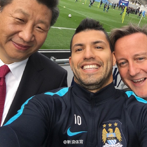 阿圭罗随后晒出了一张自拍照片,照片中,习近平在他身旁面对镜头微笑,英国首相卡梅伦也露出了笑容。