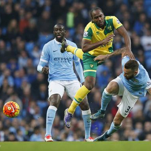 北京时间10月31日晚23:00,英国当地时间10月31日下午15:00,2015/16赛季英超联赛第11轮一场焦点战役在伊蒂哈德球场展开,曼城坐镇主场2-1险胜诺维奇。德布劳内助攻奥特门迪头球破门,斯特林制造点球,亚亚-图雷罚入。最终,曼城全取三分的同时,凭借净胜球优势力保英超积分榜榜首位置。