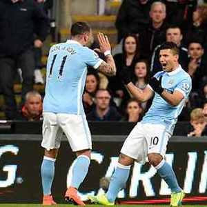 阿圭罗百球,曼城半场1-1