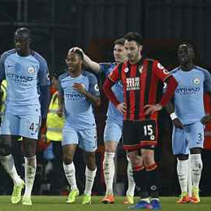 北京时间2月14日04:00(英国当地时间13日20:00),2016/17赛季英超第25轮一场焦点战在金沙球场展开角逐,曼城客场2比0取胜伯恩茅斯,斯特林先拔头筹,热苏斯伤退,替补出场的阿圭罗制造明斯乌龙。曼城3连胜后落后榜首8分。